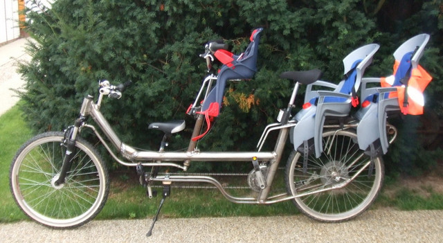 Велосипедні дитячі сидіння, що кріпляться на багажник або підсидельний штир, використовують для довгих поїздок